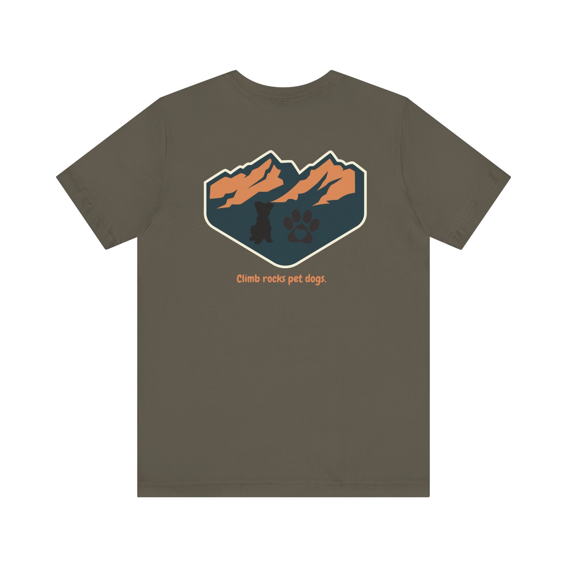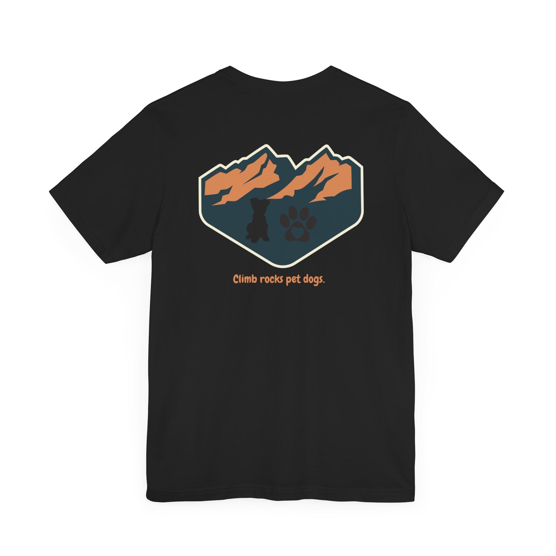 Unisex Jersey Short Sleeve Tee "Climb rocks pet dogs"