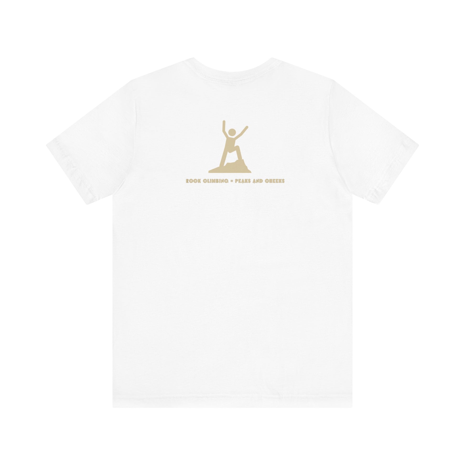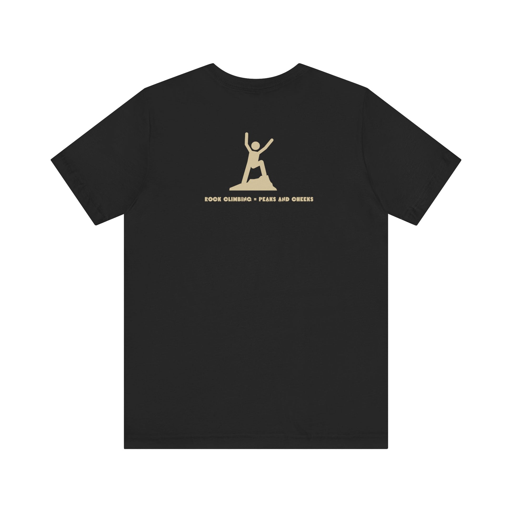 "Rock climbing = Peaks and cheeks" Unisex T-Shirt—a must-have addition to any climber's wardrobe.