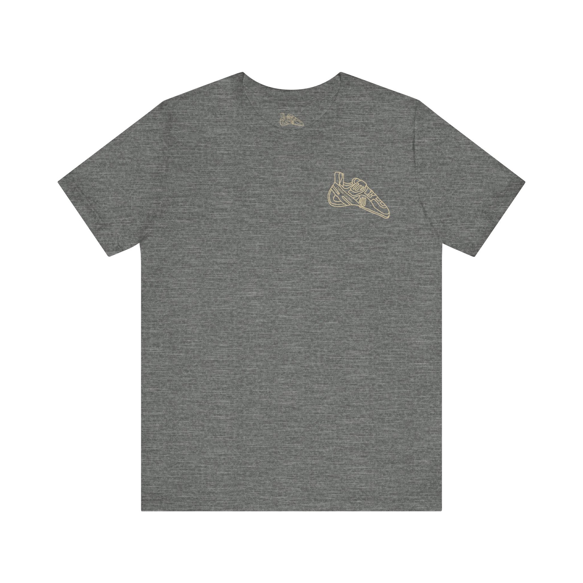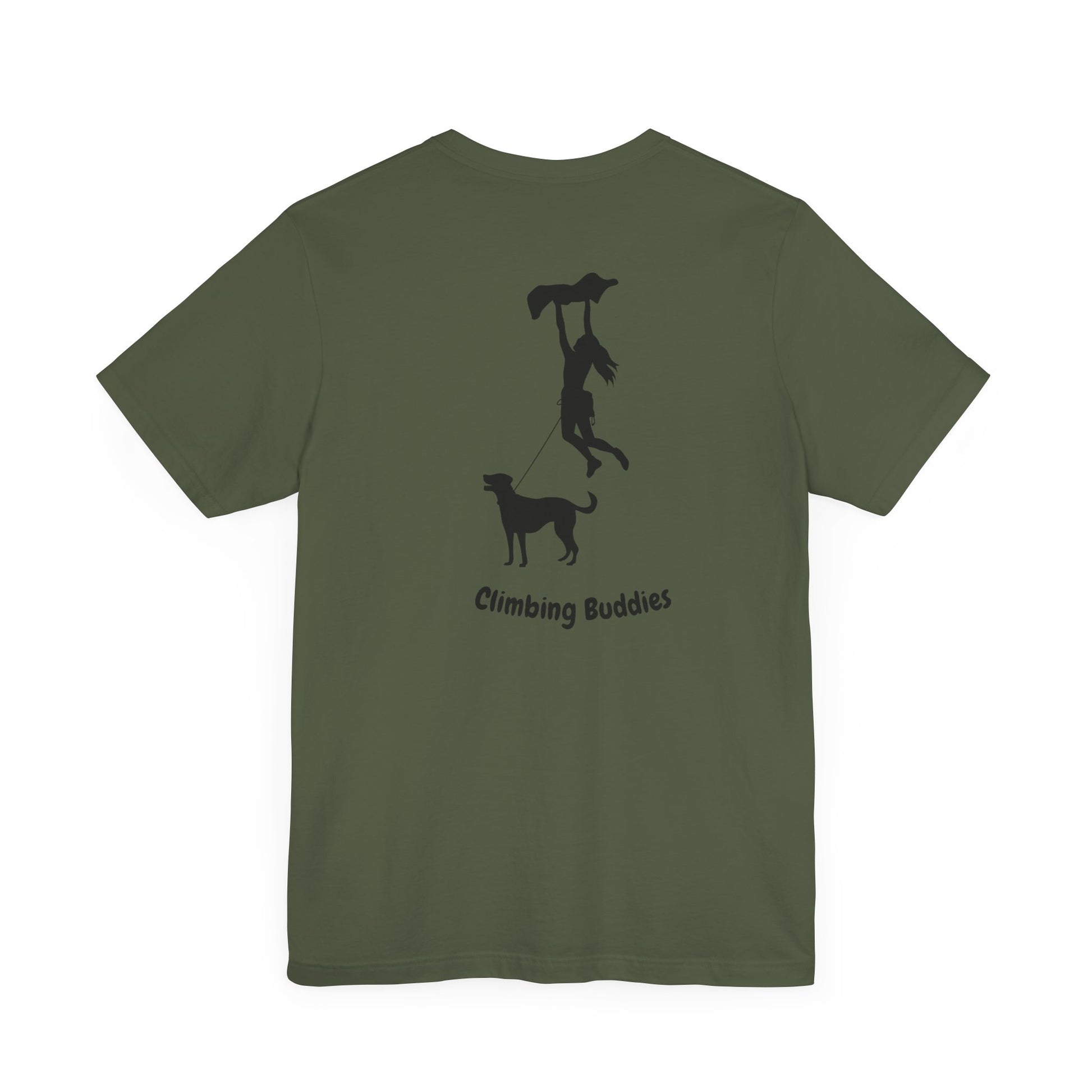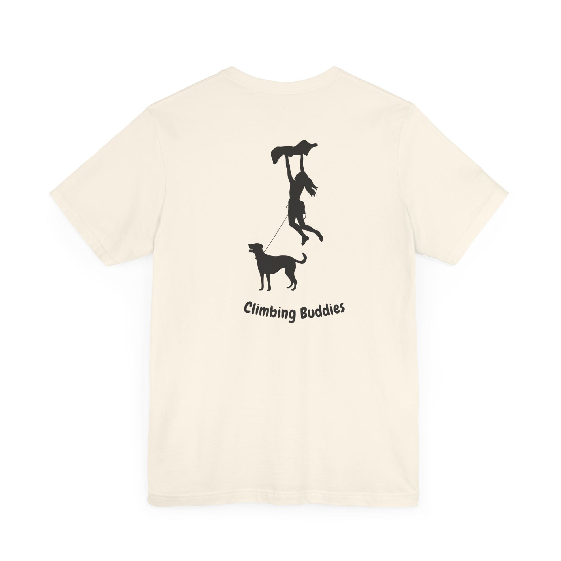 Introducing the "Climbing Buddies" Unisex T-Shirt—a delightful tribute to the inseparable bond between climbers and their canine companions. This Bella+Canvas 3001 tee features a captivating back print of a girl bouldering alongside her dog connected by a rope, accompanied by the heartwarming phrase "Climbing Buddies."