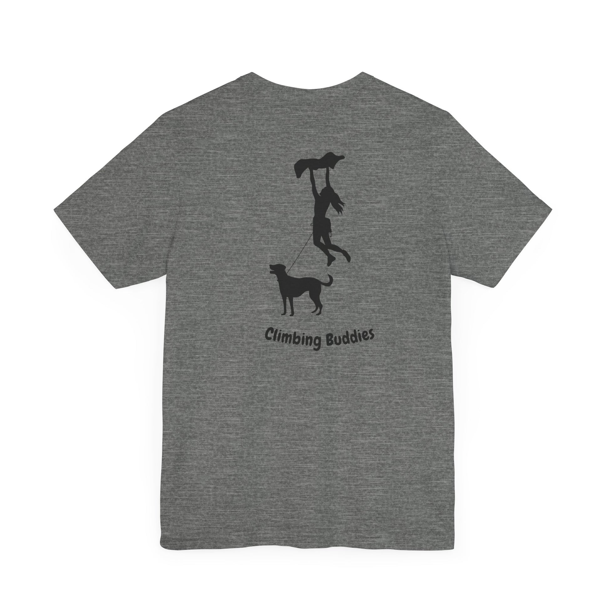 Celebrate your passion for bouldering and the special bond with your four-legged partner with the "Climbing Buddies" Unisex T-Shirt—a perfect addition to any climber's wardrobe.
